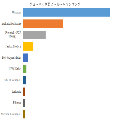 グローバル大手企業であるOlympusは、内視鏡本体製造との垂直統合優位性、強力な研究開発能力、グローバルな販売・サービスネットワークを強みとし、市場でトップシェアを占めている。一方、BizLinkHealthcare、Proterial(PCAHPMS)などの専門メーカーは、特定材料や精密加工技術の専門性を活かし、多様な内視鏡メーカーへのサプライヤーとして存在感を高めている。地域企業は、現地市場のニーズに合わせたカスタマイズ対応や価格競争力を活かし、地域市場でシェアを確保している。企業間の競争は主に技術開発、製品品質、生体安全性、コスト制御、サプライチェーンの安定性に集中しており、今後も技術提携や合併買収が市場構造の変動に影響を与える可能性がある。