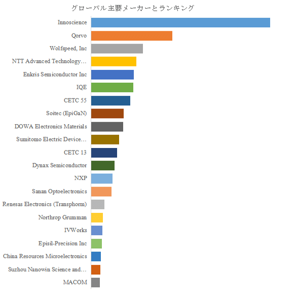 QYResearchのトップ企業研究センターによれば、GaN HEMTエピタキシャルウェハの主要製造業者としてInnoscience、Qorvo、Wolfspeed, Inc、NTT Advanced Technology(NTT-AT)、Enkris Semiconductor Inc、IQE、CETC 55、Soitec(EpiGaN)、DOWA Electronics Materials、Sumitomo Electric Device Innovationsなどが挙げられる。さらに2025年時点でトップ5社の売上ベース市場シェアは約50.0%、トップ10社は約68.0%である。これは、品質作り込みと量産再現性に高い参入障壁が存在し、供給の安定性が顧客の設計選好に直結する産業構造を示唆する。寡占環境では、価格競争よりも「規格適合」「長期供給」「工程互換」「品質保証スキーム」の設計が競争軸となり、主要プレイヤーの動向が市場の技術基準を実質的に規定する局面が強まる。