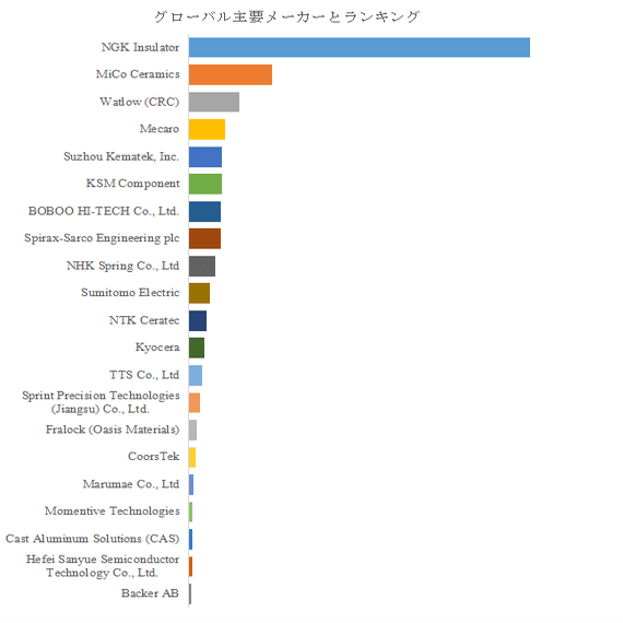 QYResearchの企業データによれば、ウェハヒーターの世界的な主要製造業者としてNGK Insulator、MiCo Ceramics、Watlow (CRC)、Mecaro、Suzhou Kematek, Inc.などが挙げられる。2025年時点でトップ5社が売上の約66%、トップ10社が約81%を占める高集中構造を示している。この集中度は、プロセスごとに異なる要求特性に応えるための製造ノウハウと品質管理力の差が市場競争の主因であることを示す。上位企業群は、熱応答性・温度均一性・材料耐久性の同時実現を目的に、セラミック焼結や薄膜パターン形成などの垂直統合型生産体制を確立している。一方で新興メーカーは、低コスト領域や特定用途に焦点を当てた差別化戦略でニッチ市場を形成しているが、依然として上位勢が品質面・納入実績面で圧倒的な優位を維持している。