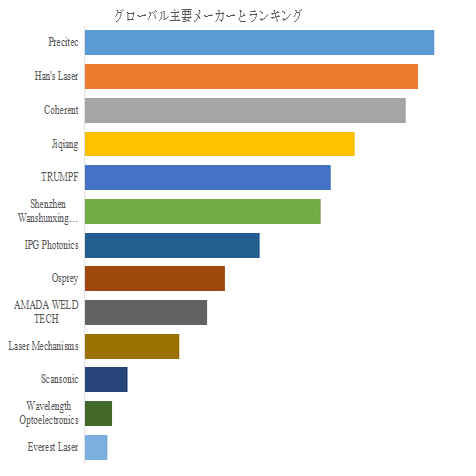 グローバル大手企業であるPrecitec、Coherent、TRUMPFなどは、強力な研究開発能力、豊富な技術蓄積、グローバルな販売・サービスネットワークを強みとし、高品質・高機能な製品で中高級市場を主に占めている。一方、Han'sLaser、Jiqiangなどの中国企業は、価格競争力と国内市場の巨大な需要を背景に、急速にシェアを拡大しており、中低級市場だけでなく、中高級市場への進出も進めている。企業間の競争は主に技術開発、製品品質、価格戦略、サービスの迅速性に集中しており、今後も合併買収や技術提携が市場構造の変動に影響を与える可能性がある。