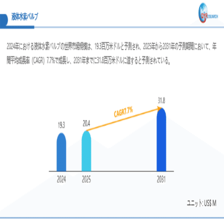 QYResearchが最新発表した「液体水素バルブ―グローバル市場シェアとランキング、全体の売上と需要予測、2026~2032」市場調査報告書によると、世界液体水素バルブ市場規模は2024年の約19.3百万米ドルから2025年には20.4百万米ドルへ着実に成長し、予測期間中に7.7%の複合年間成長率(CAGR)で拡大を続け、2031年には31.8百万米ドルに達する見込みである。